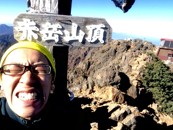 IMG_3612横岳から硫黄岳の尾根を通過中に北風が最高潮に!目から涙、鼻から鼻水、猛烈な風にあおられバランスを崩したり、身体を傾けて前に進みます。なにより怖かったのが眼鏡が吹き飛んでしまうことでした。私は眼鏡がなければ全て無力化されてしまいます。眼鏡対策怠りました。IMG_36169:30硫黄岳登頂。シャッターを押す手が風でバタバタあおられるので中々画像が撮れず苦戦。一息ついたところで下山を開始します。