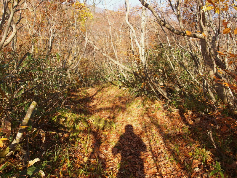 ここからも月山を望むことができます。ここから峰道と谷道に分岐します。峰道を進むと…