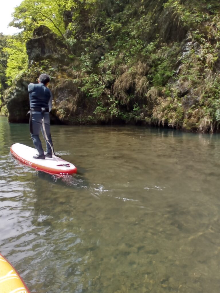 進むにつれて両岸は狭まり、岩壁が迫ってくる感覚に。ここからは川の流れも出てきて、漕ぎ上がるのもなかなかハードです💦
