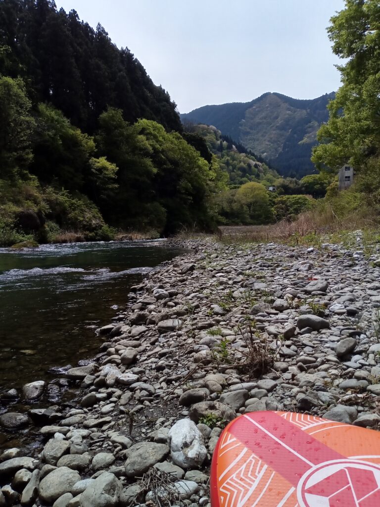 そうこうしているうちに、SUPのフィンが地面に擦れる感覚があり、気づけばあっという間にゴール。河原に寝転んでゆっくりと休憩し、この日のSUPは終了です。ほどよい達成感と、美しい景色に心まで癒された一日でした。