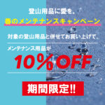 2026年4月6日 / 最終更新日時 : 2026年4月10日 webmaster 日帰り登山 登山用品に愛を。【春のメンテナンスキャンペーン】開催 春の登山シーズン前に道具やウエアをメンテナンスしましょう。 キャンペーン名称 「春のメンテナンスキャンペーン」 キャンペーン期間 2026年4月6日(月)~4月30日(木) キャンペーン内容 対象の登山用品と併せてメンテ […]